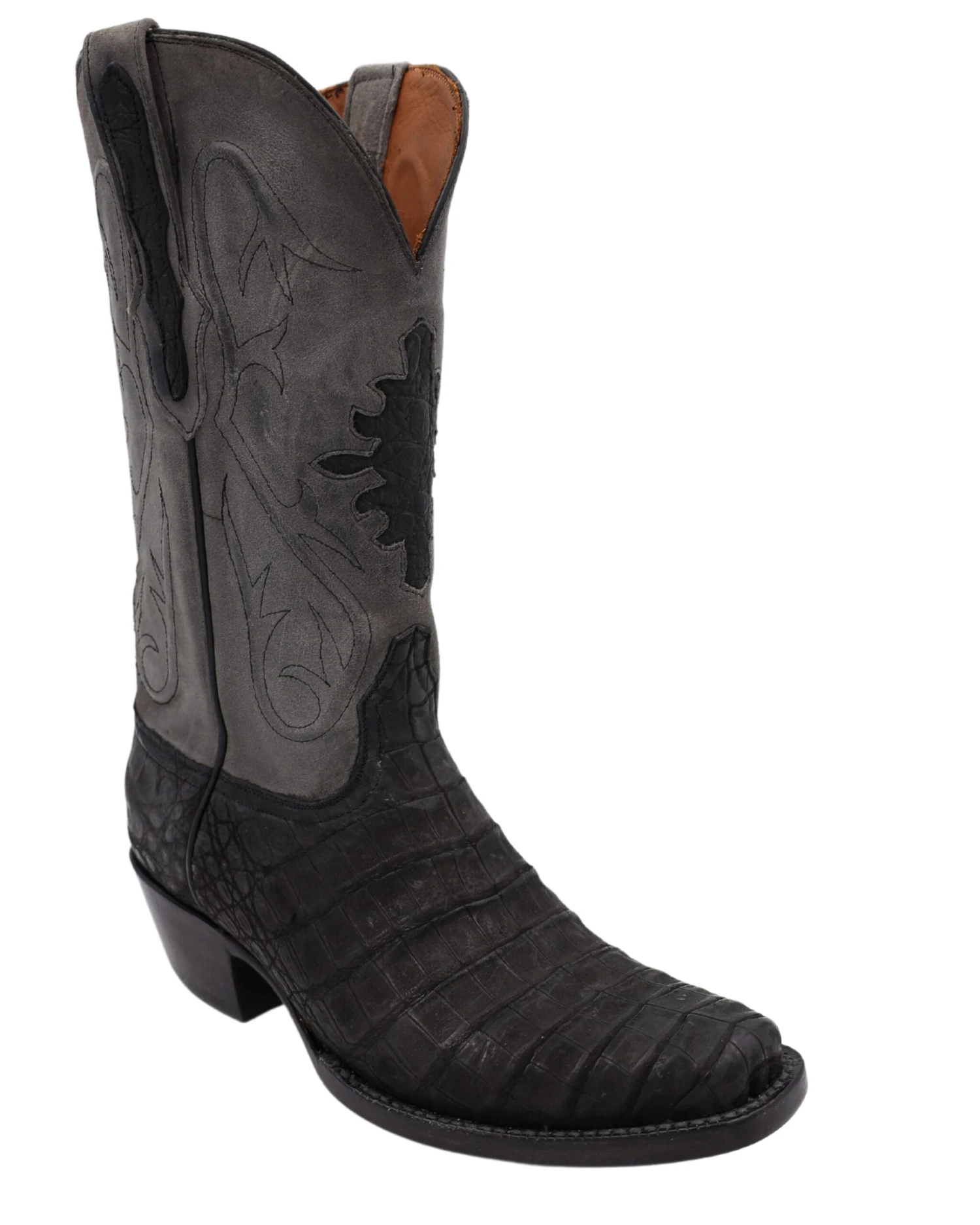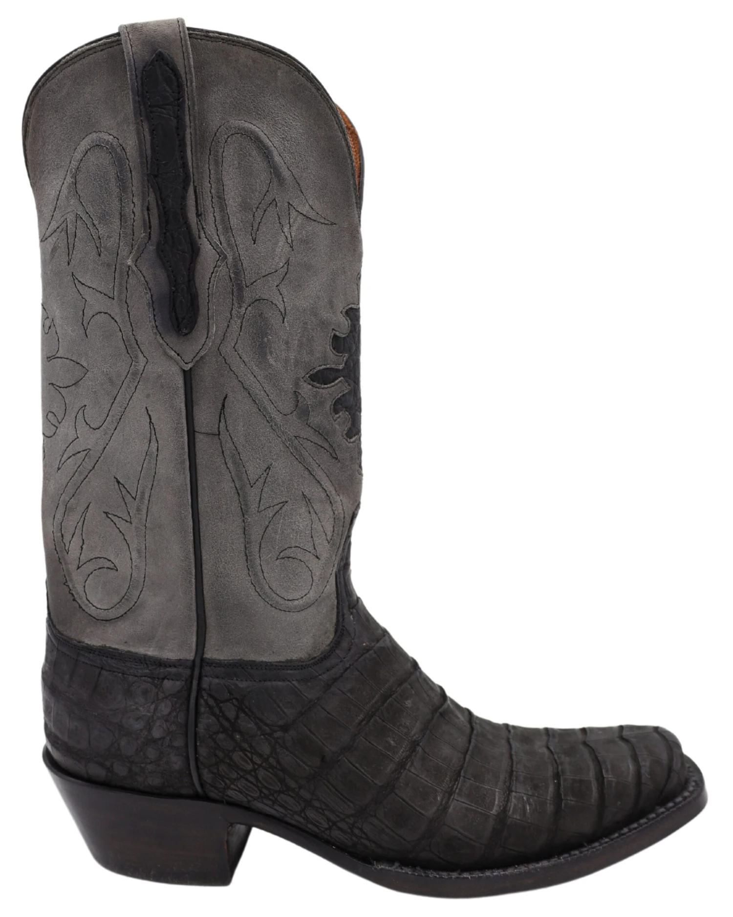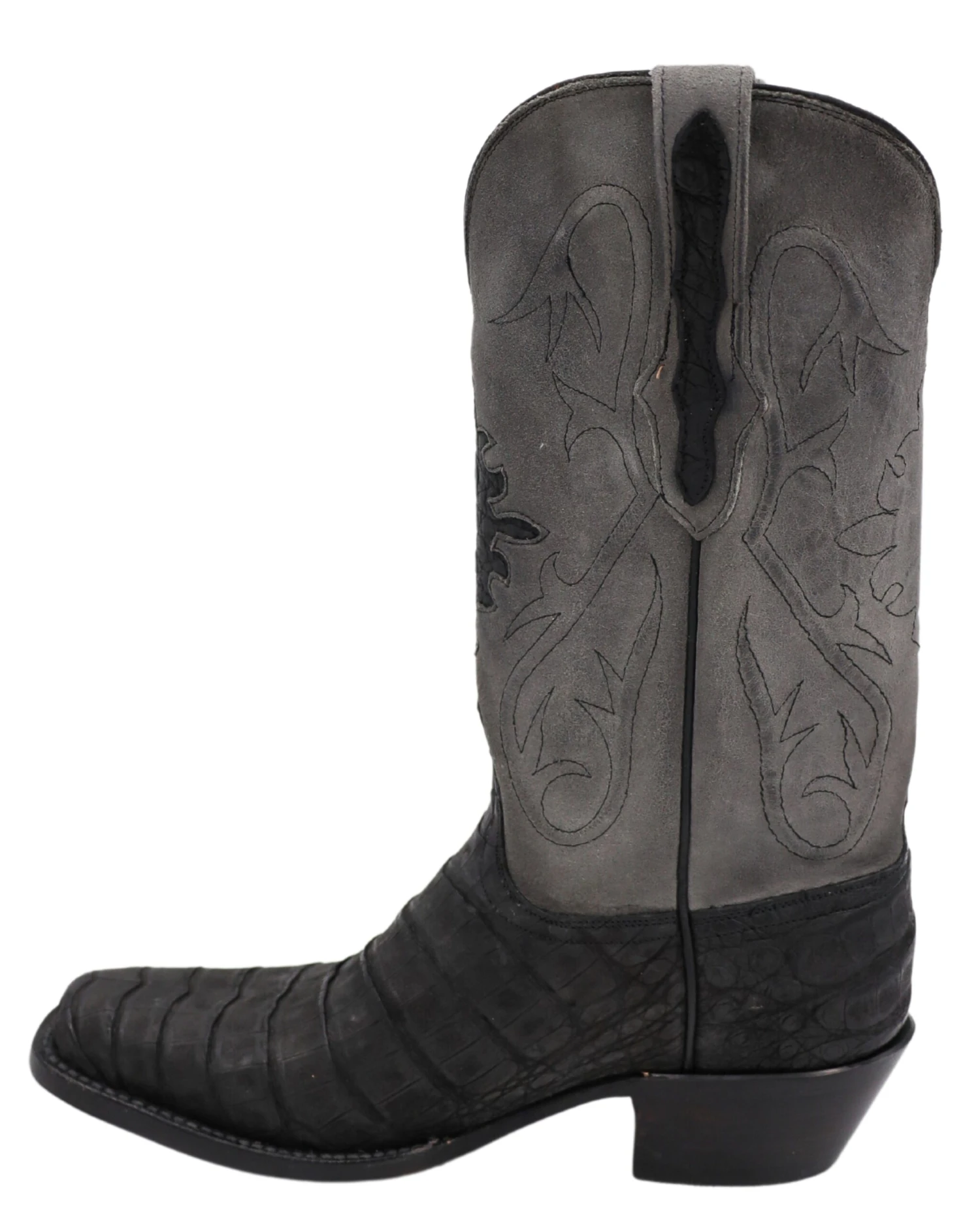 Experience the luxury of these Black Jack Sueded Caiman Belly Boots. Crafted from caiman belly, they bring together classic cowboy style with a modern twist on traditional stitching, complete with gray shaft and cutter toe. Enjoy the quality of leather sole under foot and the timeless look of these boots. What’s not to love?
