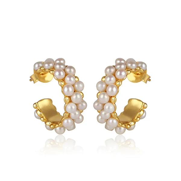 Bring a little vacation wherever you go with the Sea Salt Hoop Earrings. Encrusted in lux pearls in varying sizes for contrast, and set in 18K gold-plated brass, these open hoop earrings are a chic look from day to night. These Freshwater Pearl hoop earrings feature a post-back closure and are hypoallergenic. Wherever you wear the Sea Salt Hoop Earrings, you’ll feel transported to your favorite beach locale from the moment you put them on.
