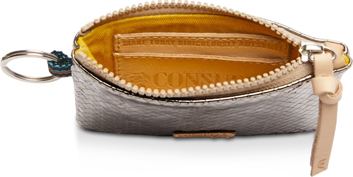 The Pouch is an easy, all-in-one bag to keep your cards and cash organized and on hand. An attached metal keyring takes the Pouch from your bag to keys with ease.