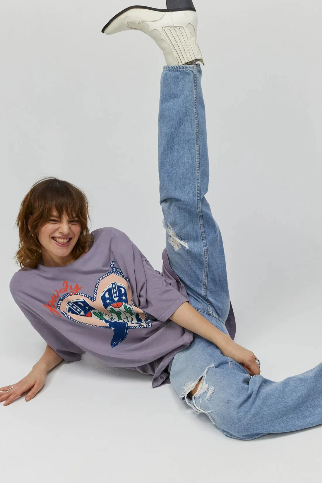 Howdy! A certified classic just rode in. Designed with a heart shaped lasso filled with iconic cowboy boots with country inspired details – cacti, stars and a bull – this top-notch tee places you right on the ranch. Snatch up the newest member of your western lineup. We can’t wait to see you in it.