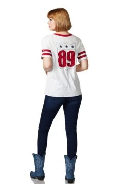This galactic graphic tee is serving up sass with this spirited equine in outer space. Itβs embellished with embroidery and accented with a contrasting collar and retro-ringed sleeves. An all-around out-of-this-world addition to your everyday outfit!