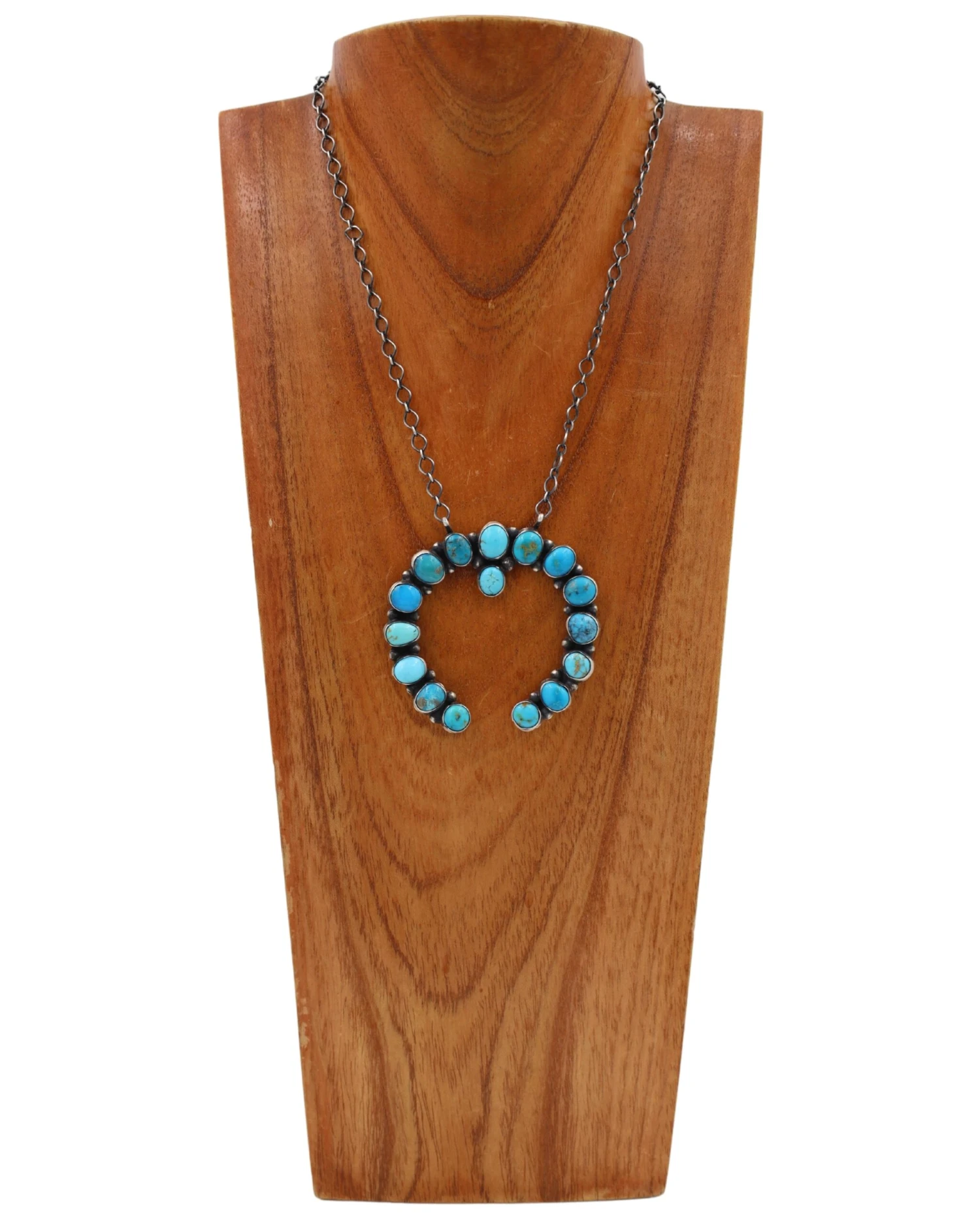 This bold, oversized Naja necklace on a chain is made up of 16 beautiful turquoise stones that will add a statement to any look. Stackable for extra impact, this unique and eye-catching piece will have heads turning. Dare to be different and make a fashion impact!