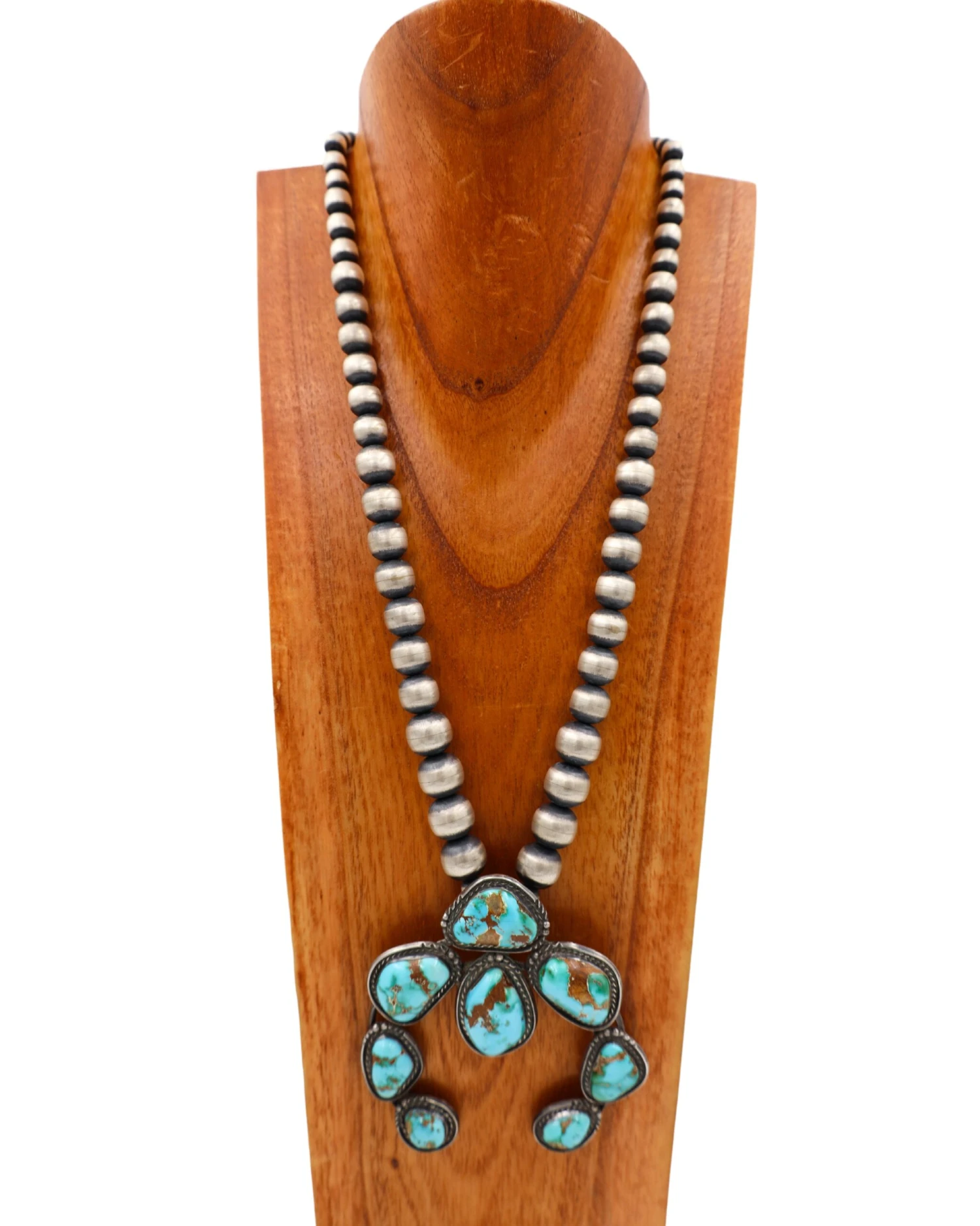4.5″ (L) x 4″ (W) Sterling Silver Plated Natural Turquoise Stone Squash Blossom