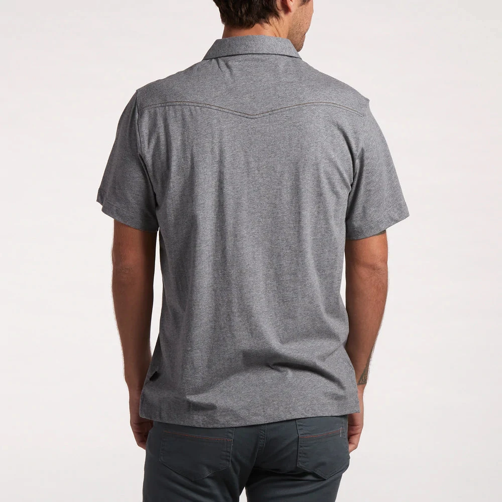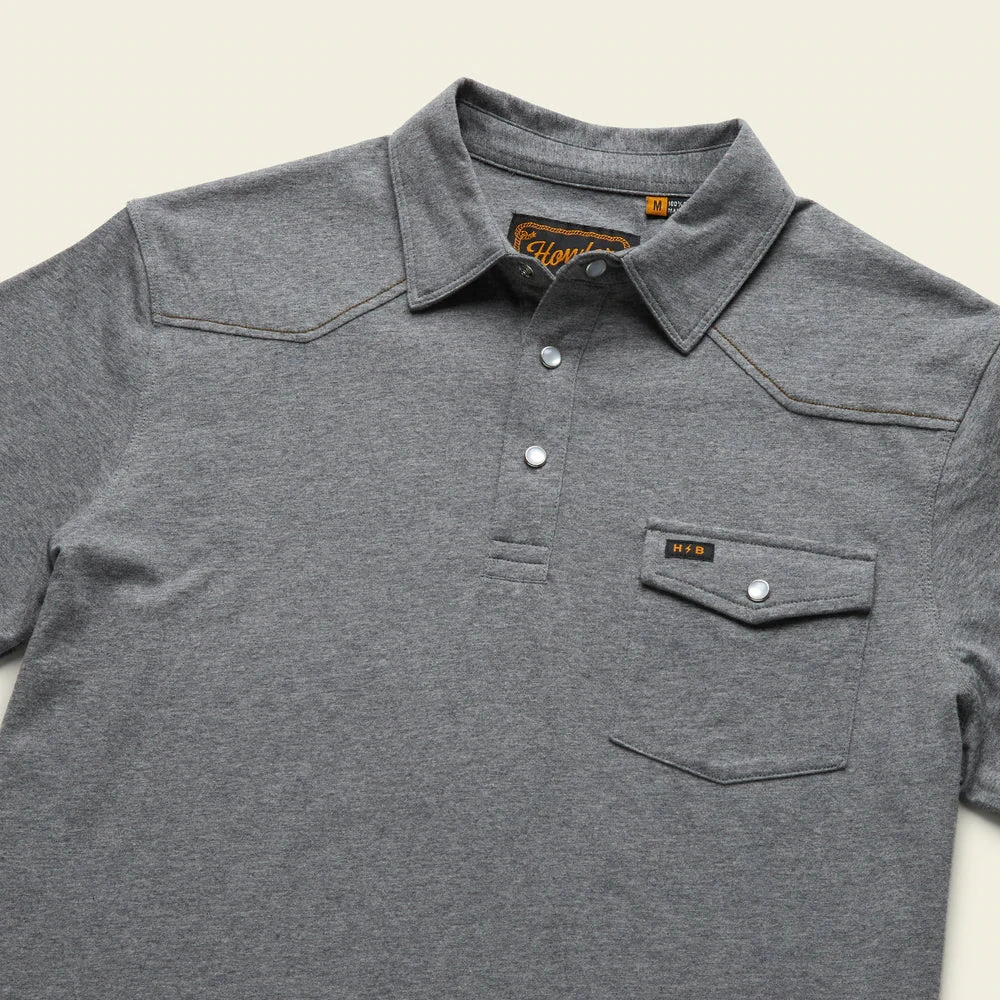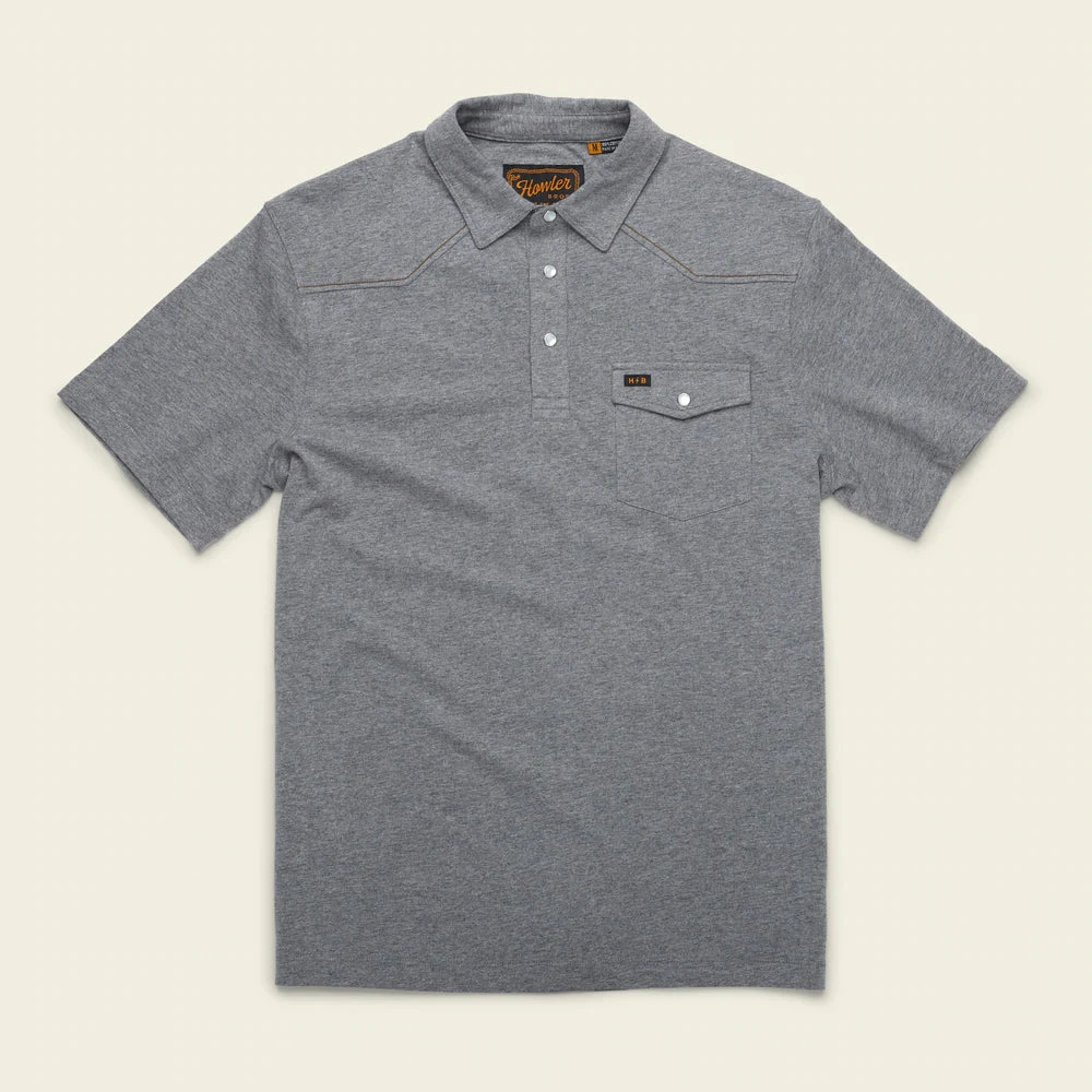 The Ranchero Polo has all the versatility of your favorite staple polo but is a major style upgrade with its cool single pocket design, pearl snaps and subtle western style yoke. Made of super soft 100% heathered cotton you have come to expect from Howler with a straight hem for untucked wear.