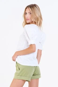Emphasized with flourishing blooms, the Sequence Halsey Top brings a colorful touch to every warm-weather wardrobe. This top is crafted from liquid-like silk and boasts a flattering V-neck, short sleeves, and an asymmetric hem with embroidered scalloped edging. pair with linen pants on your next exotic escape or to alfresco brunch with friends. Product Details: • 100% Silk • Scalloped Edging with Embroidery • Split Hem • Model Height: 5’11” • Model is wearing a size Small • Measurements for Size Medium: Length- 27 1/4″, Bust- 49 1/2″ • Care instructions: Turn inside out. Hand wash gently. Lay flat to dry. Light spair iron if necessary.