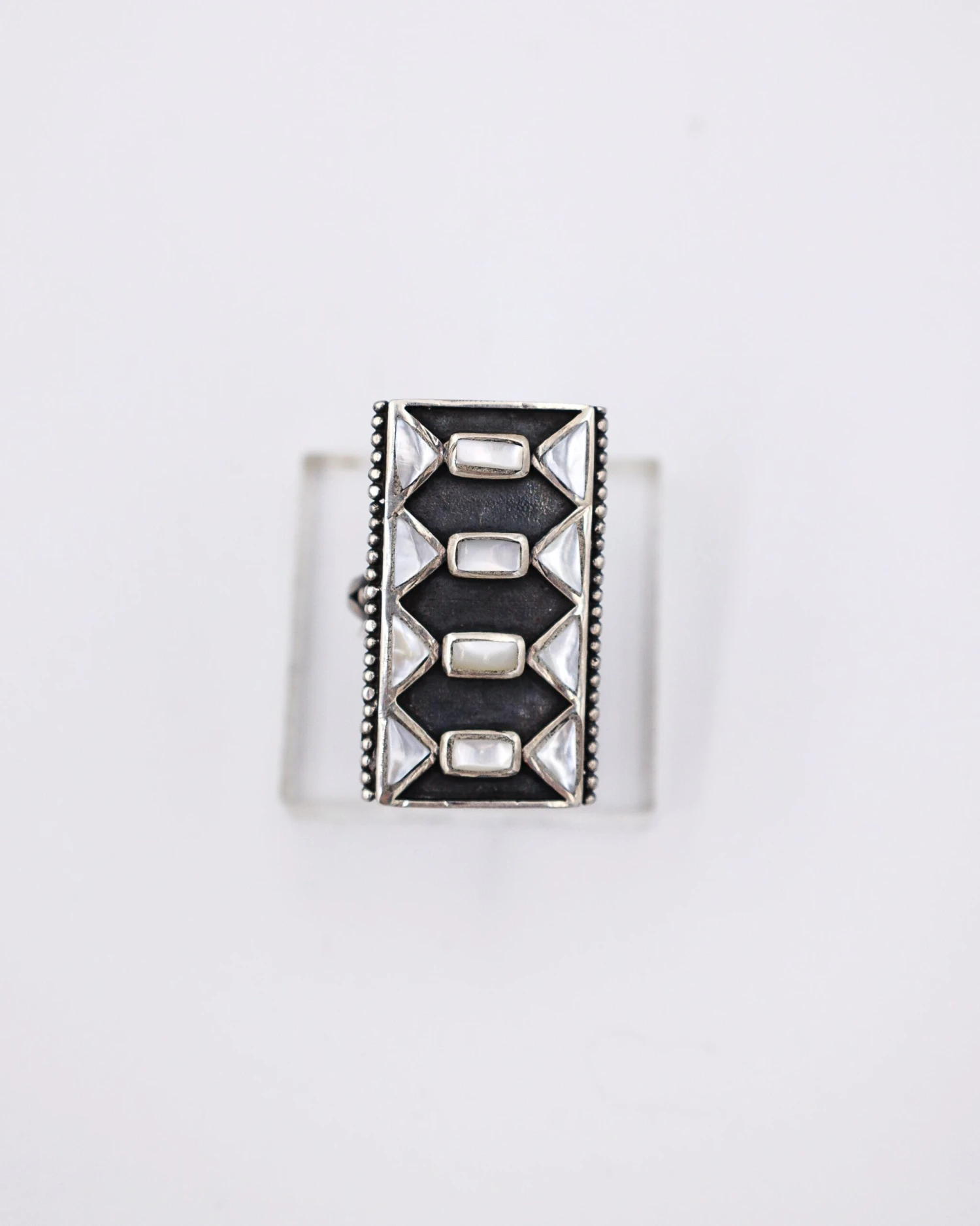 MOTHER OF PEARL GEOMETRIC RING