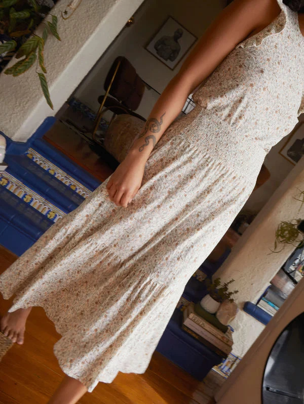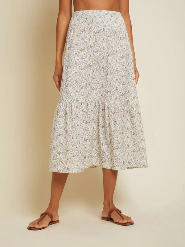 This romantic, tiered midi skirt has a high ruched waist (so it’s comfortable and flattering). This one comes in our floral Meadow print.