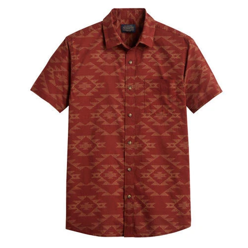 Novelty Western prints are exclusive to Pendleton in an ultra-light cotton shirt with short sleeves, one open chest pockets, and shirttail hem.