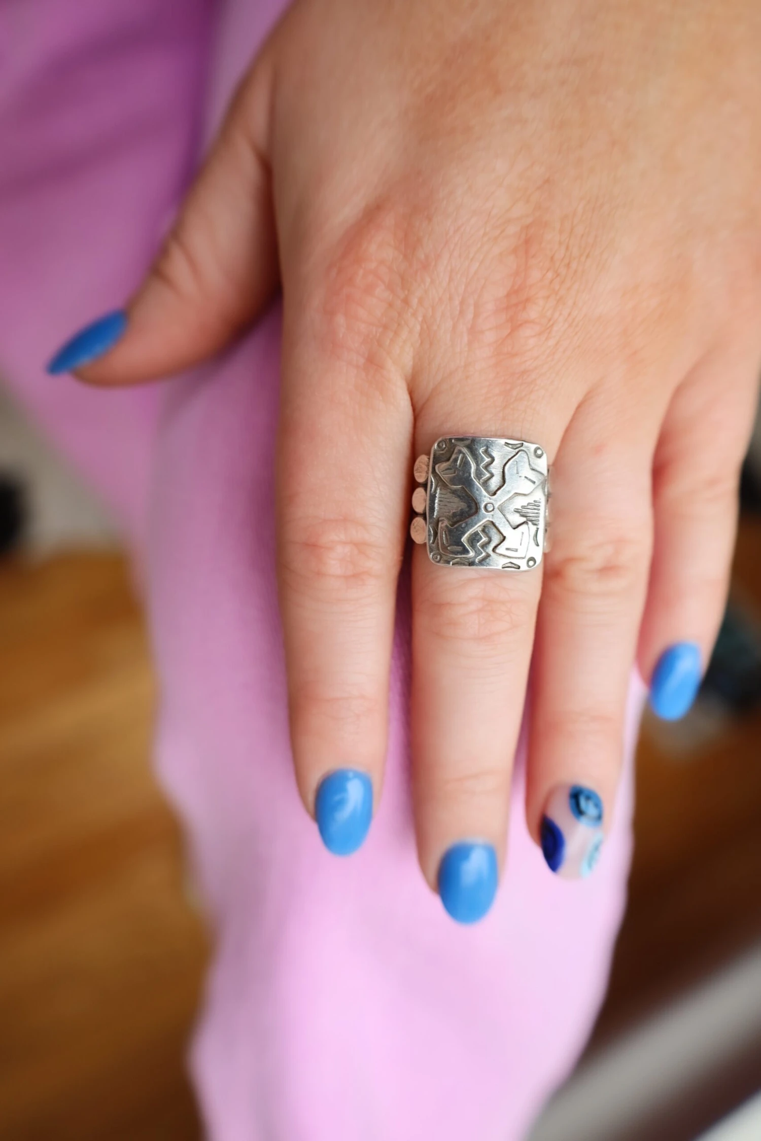 Ignite your spirit in this remarkable Peyote Bird Crossed Arrows Square Shield Ring. Crafted from the finest sterling silver, this beautiful, square-shaped ring features an eye-catching crossed arrow design. Wear it and let it invigorate your spirit with strength, courage and passion!