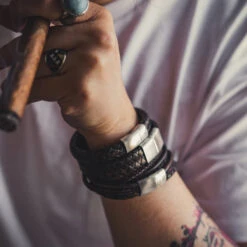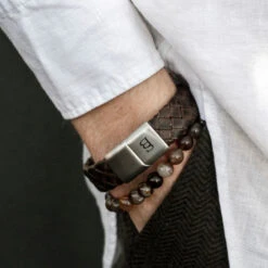 The portliness of this braided leather bracelet for him is a direct representation of masculinity. It’s thick, stocky, tough and robust enough to endure daily wear with ease.