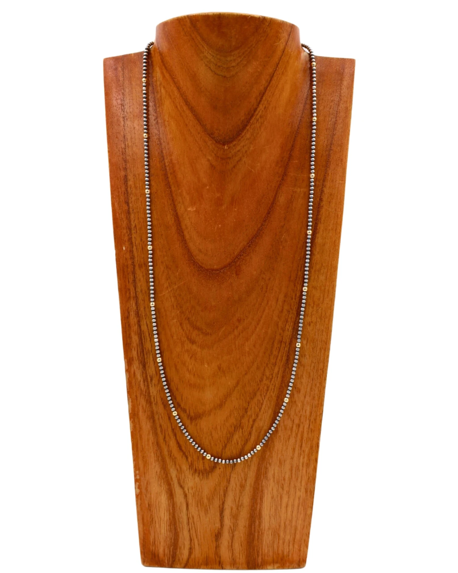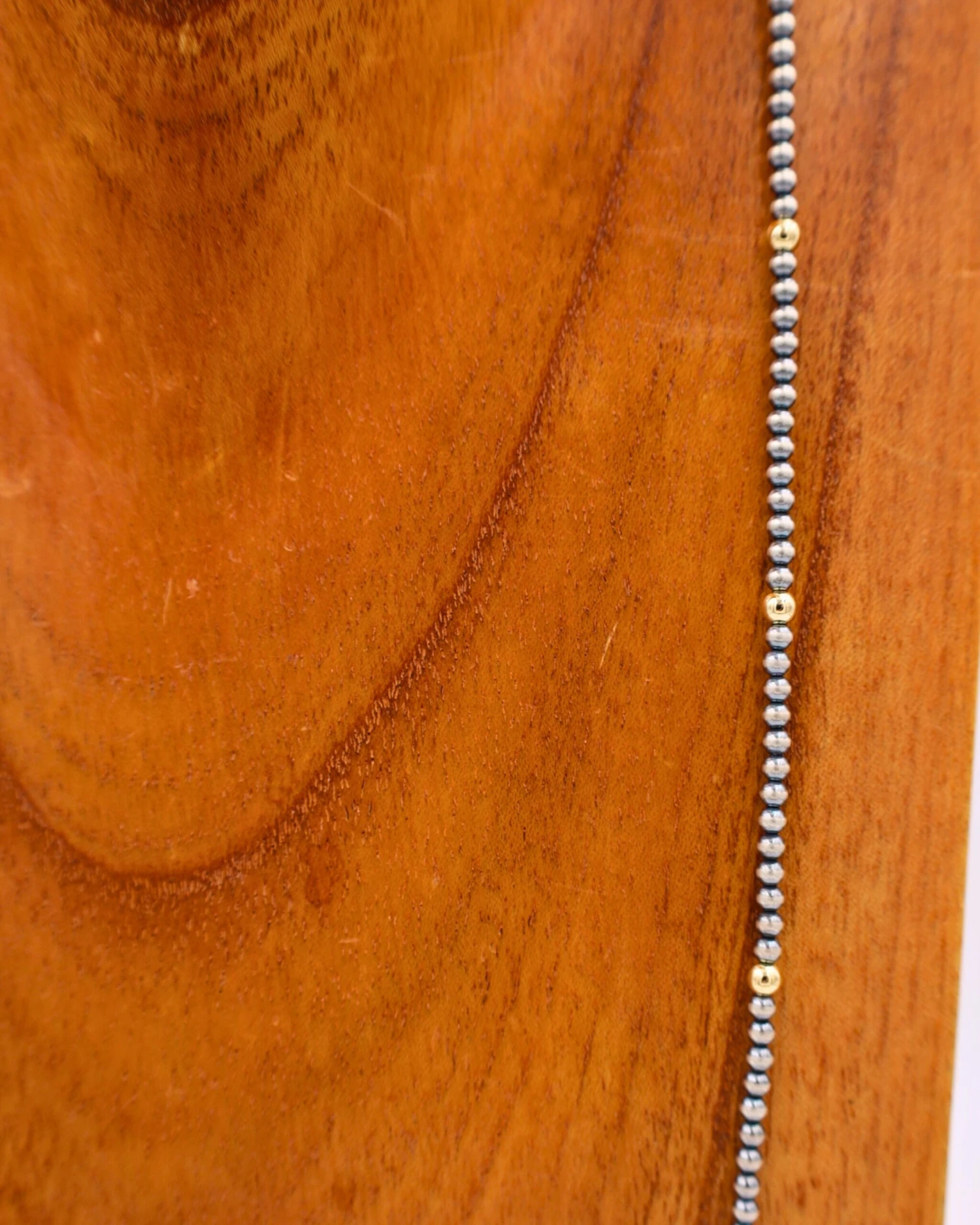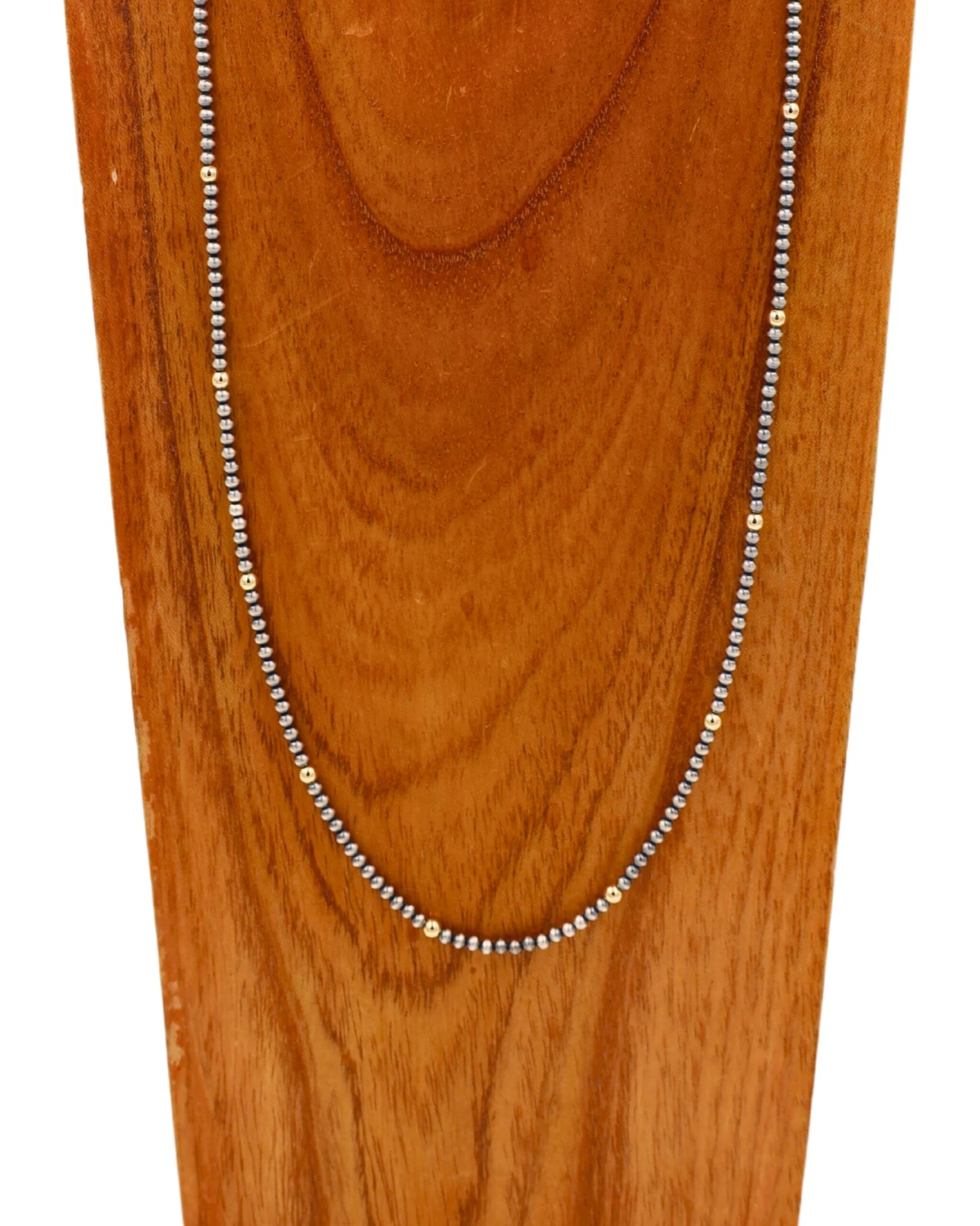 This beautiful strand of Navajo pearls are genuine sterling silver and gold filled beads and handmade. These necklaces are perfect for layering or wearing alone.
