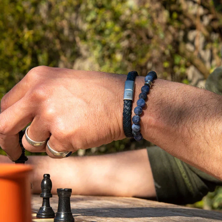 Stout, sturdy and hardy, this braided leather bracelet bestows steadfast strength and security. Equipped with a branded metal clasp, it furnishes a secure fit comfortably around the wrist.