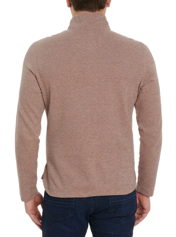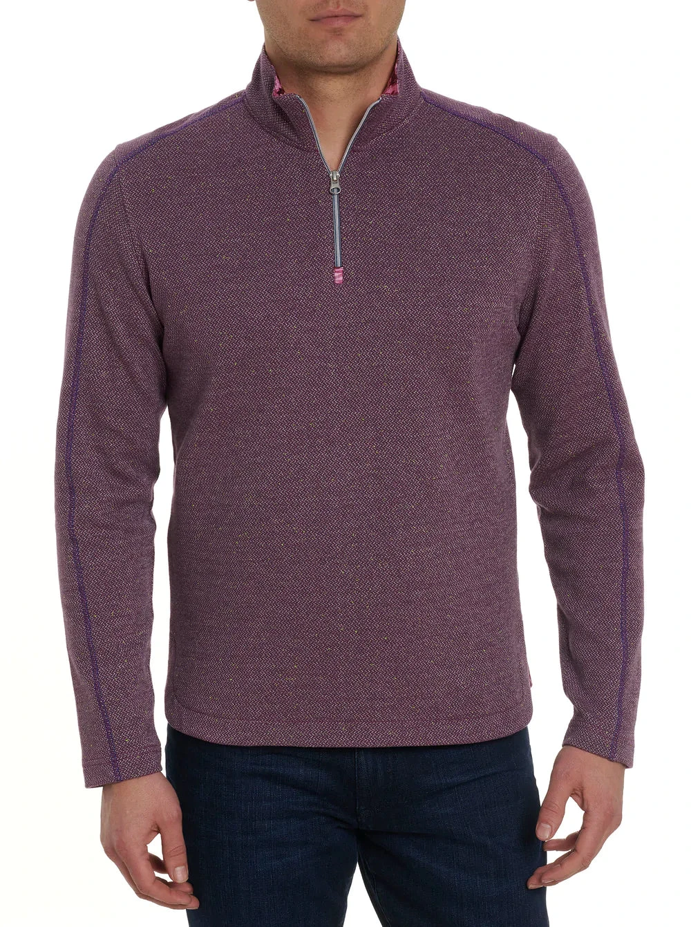 A yarn dyed jacquard stretch cotton interlocking knit elevates this 3/4 zip neck style to the ultimate layering piece.