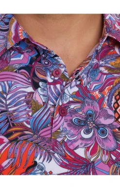 Flower Power was never as lush or colorful as the sophisticated allover floral print on this outstanding knit as much #WearableArt as shirt pattern.