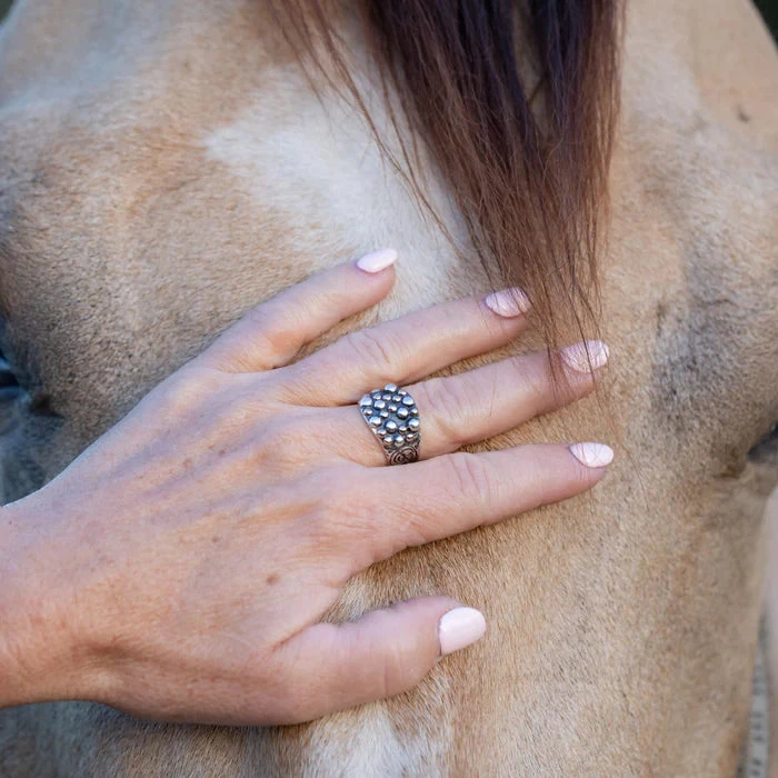 The perfect balance of allure and strength, the Duchess Ring features a harmonious blend of sterling silver and gold filled beads with a fully hand engraved band.Â