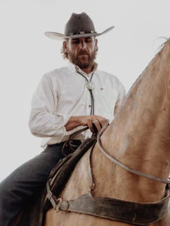 Our Horseman style bolo features a handsome horseshoe figure and is one of our most detailed bolo pieces. This horseshoe design includes a hand twisted sterling rope detail on both the circumference of the disc and the hand cut shoe. Adorned with gold fill nail accents and set onto a 2″ x 2″ round sterling disc. Available with a black cord only.