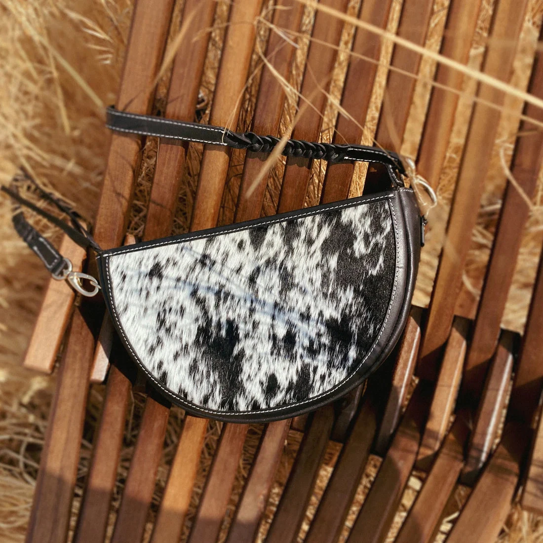 It’s not just a phase, it’s your new go-to bag, with just enough western flair to take any outfit from casual to cowgirl cool. The Just a Phase Crossbody is crafted with handpicked cowhides and supple leather, with a touch of gold hardware to finish. Thanks to a stylish double-buckled detachable shoulder strap, you can wear this versatile bag as a crossbody, shoulder bag, or around the waist. Or, better yet, ditch the strap and carry it as a clutch. The only question is: saddle or black? Designed right here in the USA for cowgirls everywhere.Â